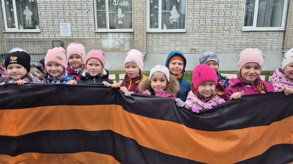 Мы также растянули Георгиевскую ленту, символизирующую память и уважение к тем, кто сражался за нашу свободу, почтили память погибших минутой молчания.